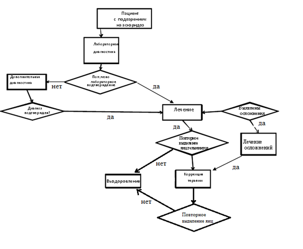 Диагноз подтверждается лабораторными исследованиями. Лечение аскаридоза проводится антигельминтными препаратами. Пациент не требует изоляции. Профилактика аскаридоза: соблюдение правил личной гигиены.