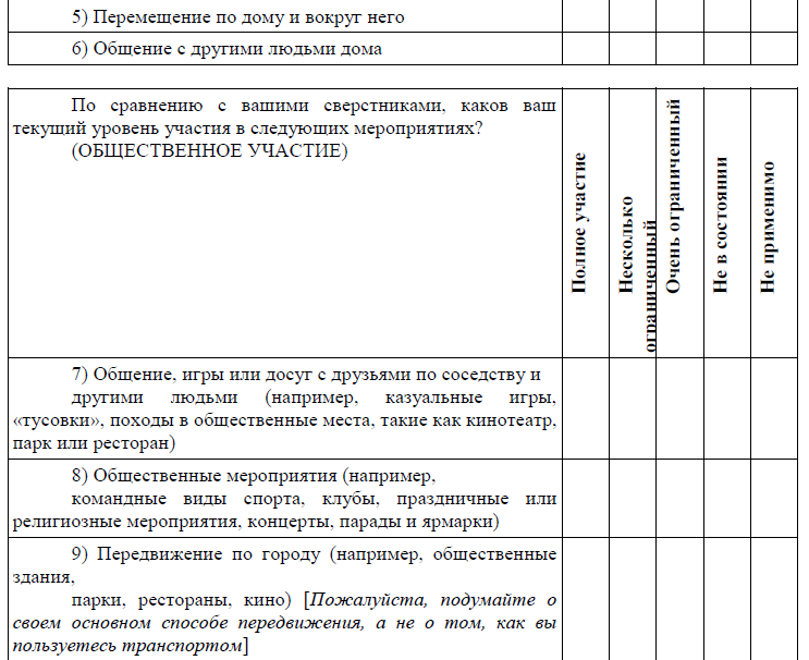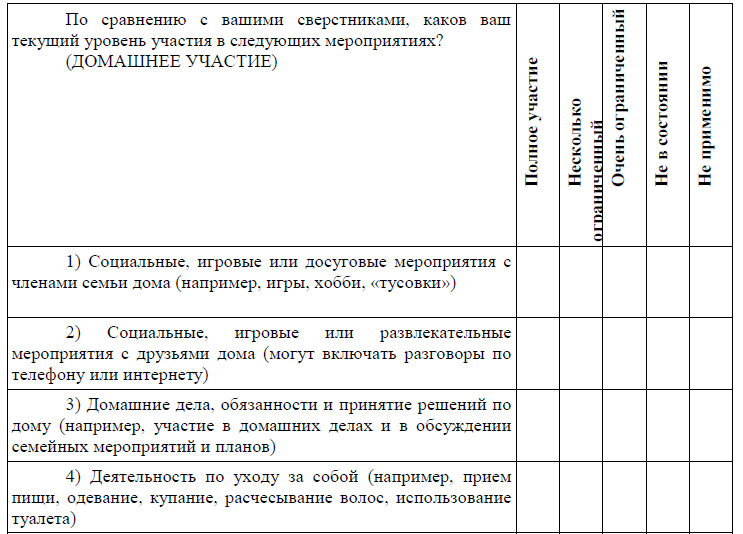 Используете ли вы в настоящее время какие-либо вспомогательные устройства или оборудование, помогающие вам участвовать (например, адаптированные кухонные принадлежности, стул для душа, записная книжка для школы, ежедневник, компьютер)?