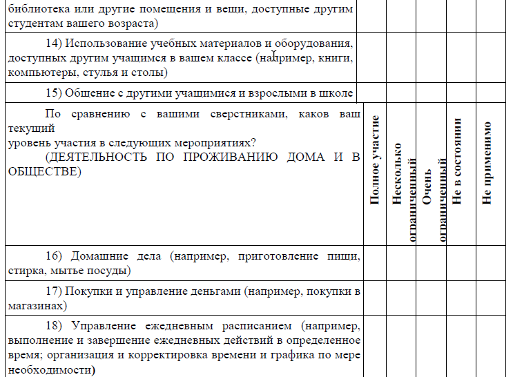 Были ли внесены какие-либо изменения в обстановку вашего дома, школы (или работы), чтобы помочь вам принять участие (например, переставить мебель и материалы, отрегулировать освещение или уровень шума, построить пандус или другие физические сооружения)?