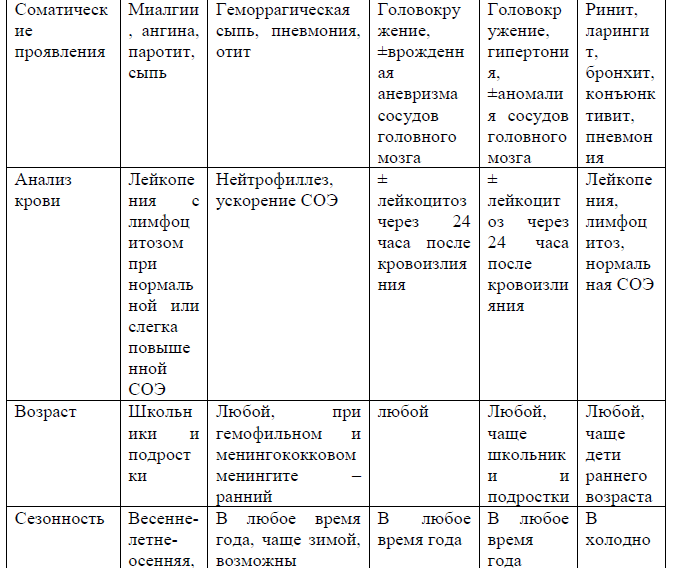 Эпидемический анамнез играет ключевую диагностическую роль при ВМ, вызванном: энтеровирусами, вирусом клещевого энцефалита, варицелла зостер, аденовирусом, аренавирусом, для которых более характерна сезонность развития инфекционного заболевания [2,12,14].