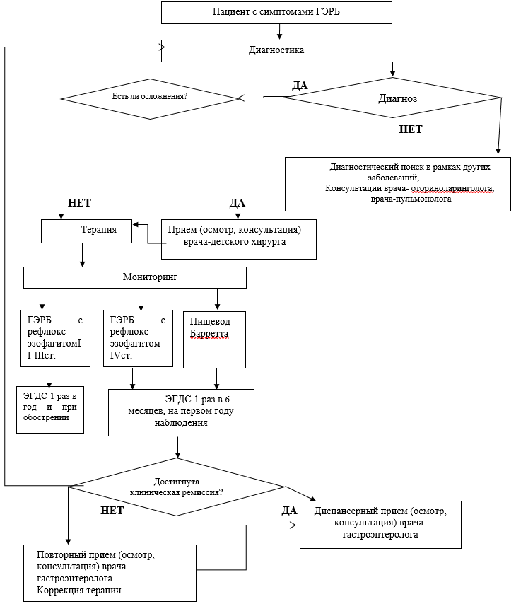 Инструментальное обследование (эзофагогастродоуденоскопия [ЭГДС], внутрипищеводная рН-метрия, рН-импедансометрия).