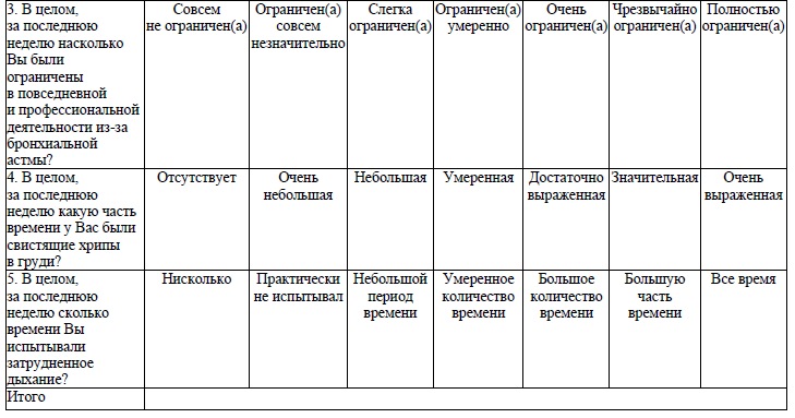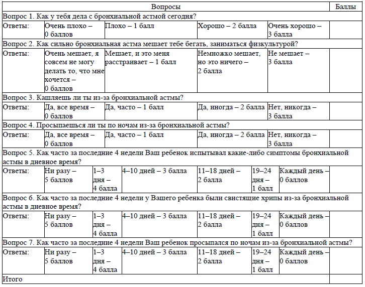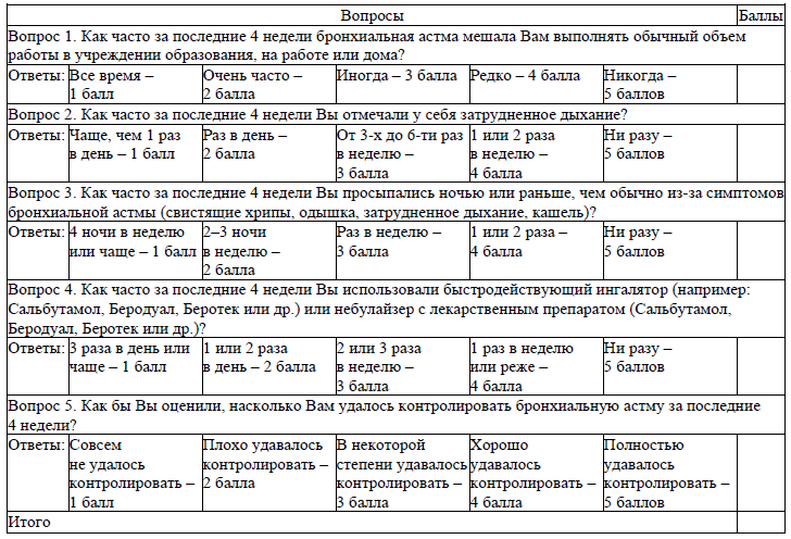 АСТ тест – Asthma control test (тест для оценки контроля симптомов БА у пациентов с 4 лет);