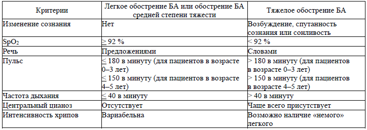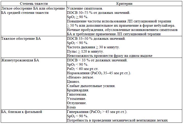 - тяжелое обострение БА, жизнеугрожающая БА, БА, близкая к фатальной;