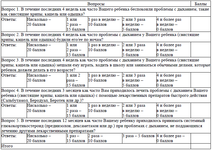 TRACK тест – Test for Respiratory and Asthma Control in Kids (тест для оценки контроля симптомов БА у пациентов до 6 лет).