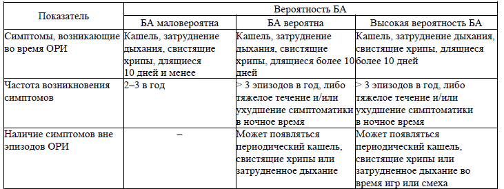 Характер симптомов не соответствует БА, но часто возникают эпизоды свистящих хрипов требующие применения ЛП ситуационной терапии (> 3 в год);