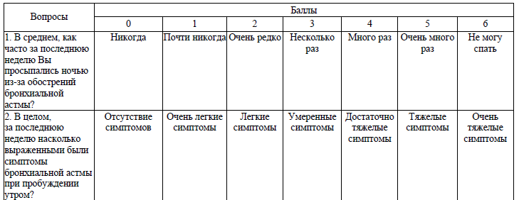 ACQ тест – Asthma control questionnaire (тест для оценки контроля симптомов БА у пациентов с 6 лет);