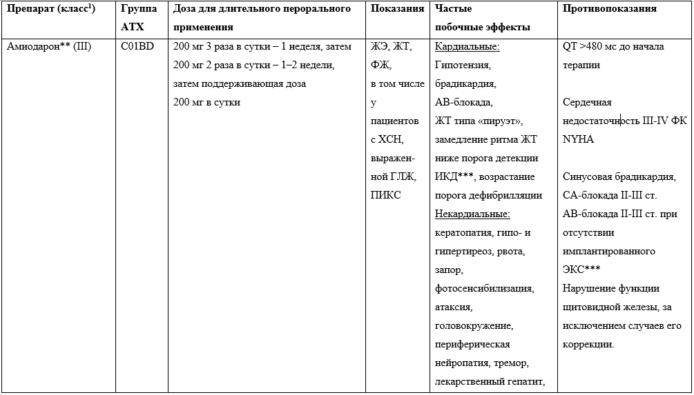 Таблица 1. Классификация желудочковых аритмий Российского кардиологического общества 2023 г. (ЖА-РКО-23)