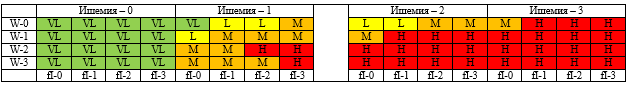 VL – очень низкий риск ампутации/польза реваскуляризации; L – умеренный риск ампутации/польза реваскуляризации; M – средний риск ампутации/польза реваскуляризации; H – высокий риск ампутации/польза реваскуляризации.
