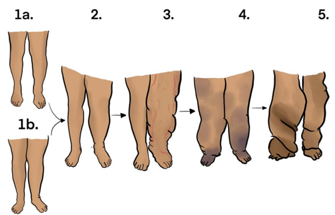 Классификация лимфедемы по C. Campisi. [44] подразделяется на 5 стадий (Рисунок 2):