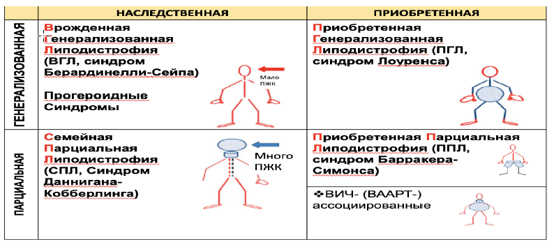 Таблица 1. Классификация форм липодистрофии [[1,2,3,4]