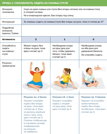 - Без опоры на верхние конечности или опираясь на спинку стула, сохраняет положение сидя, голова и туловище по оси