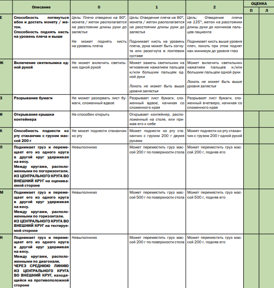Приложение Г7. Модуль оценки моторной функции верхних конечностей