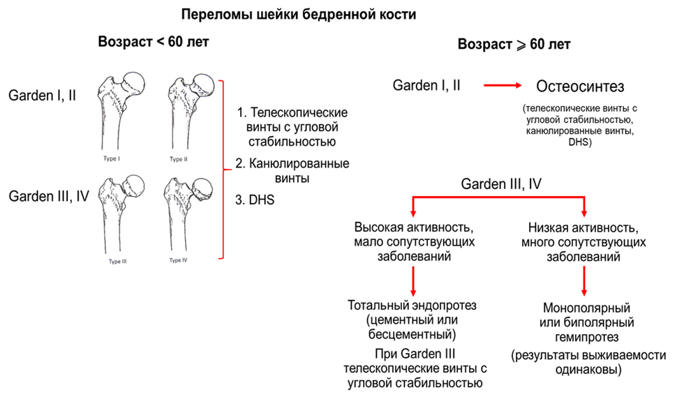 Для систематизации переломов ШБК в литературе наиболее широко используют классификации Garden [77] и Pauwels [152], позволяющие, в зависимости от типа перелома, определить тактику лечения и прогнозировать его результаты.