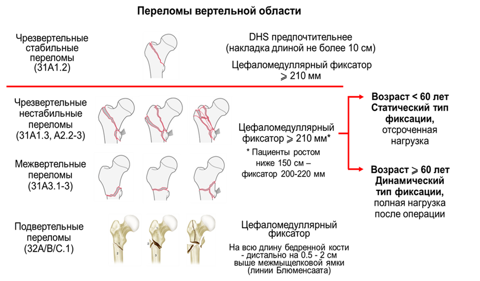 Классификация переломов вертельной области бедренной кости