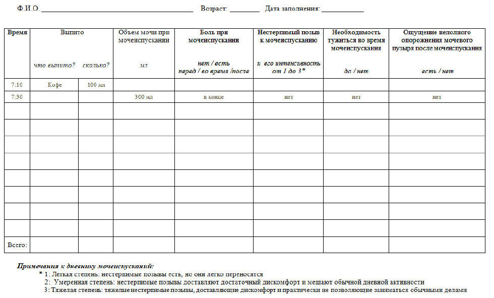 Дневник мочеиспускания