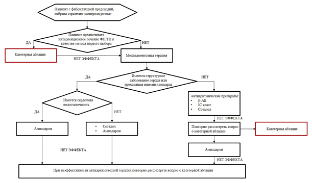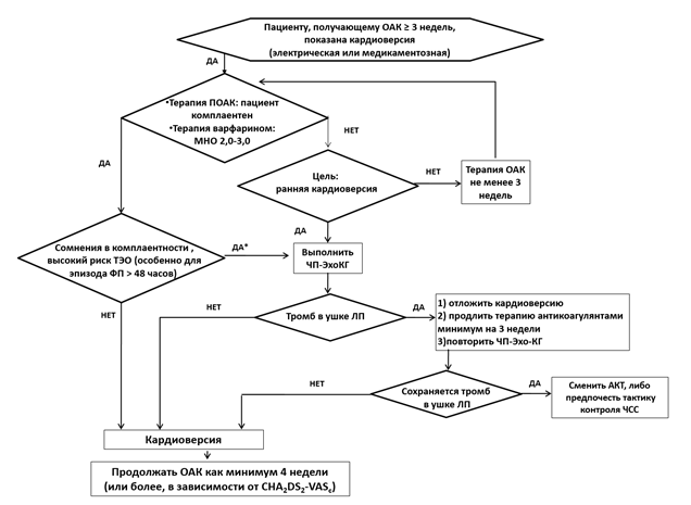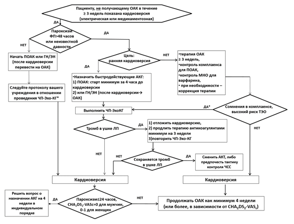 Комментарий: кроме того, в последнее время с усовершенствованием технологий интервенционных и хирургических методов лечения ФП/ТП, стали также выделять дополнительный вариант аритмии – раннюю персистирующую форму ФП, подразумевающую наличие нарушения ритма сердца длительностью от 7 дней до 3-х месяцев. Важность выделения данной формы нарушения ритма сердца базируется на ожидаемых результатах от планируемого лечения и имеющихся сведениях, подтверждающих потенциальных успех как антиаритмической терапии, так и интервенционных процедур [23, 24].