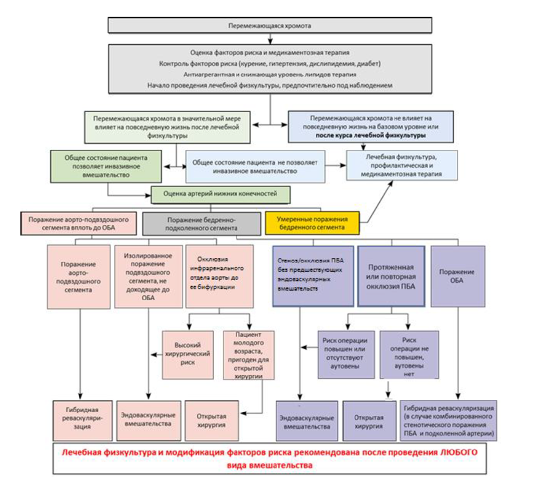 Алгоритм принятия решений по лечению пациента с клиникой перемежающейся хромоты.